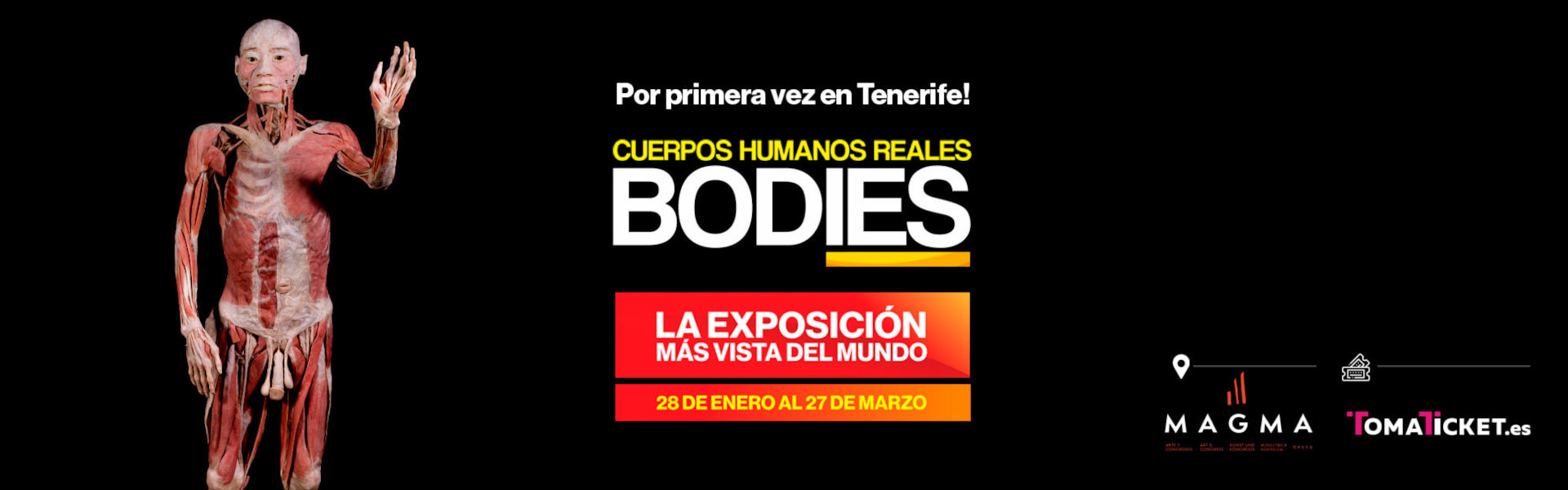 Costa Adeje acoge la exitosa exposición sobre el cuerpo humano, una de las más visitadas de la historia. Tras recorrer más de 18 países y reunir casi 30 millones de visitantes, esta muestra presenta en 800m2 de recorrido las diferentes áreas del cuerpo humano. Se podrán observar órganos y cuerpos reales cuidadosamente conservados mediante la plastinación, un proceso tecnológico para la conservación de materiales biológicos.