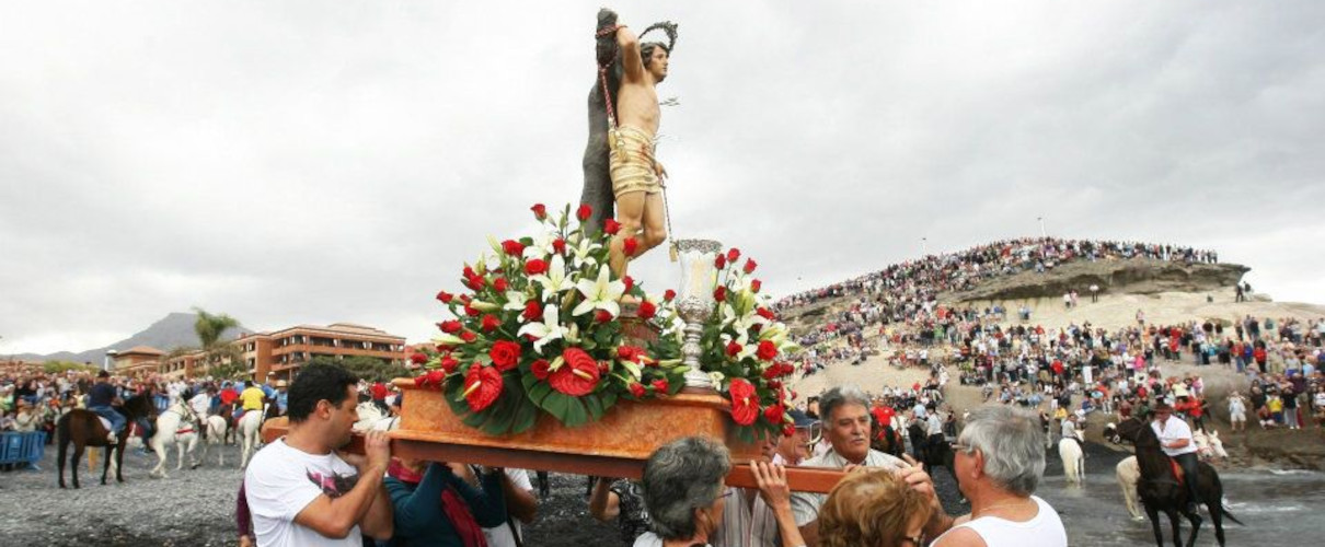 San Sebastián, patrón de los ganaderos y co patrono del municipio de Adeje junto la Virgen de la Encarnación y a Santa Úrsula, celebra su tradicional romería como es habitual el día 20 de enero. Los protagonistas de esta romería tan singular son los caballos. Cientos de jinetes acuden a la costa de Adeje para realizar el tradicional baño en el mar. Esta antigua tradición es una de las que más personas congrega de todo el Sur de Tenerife