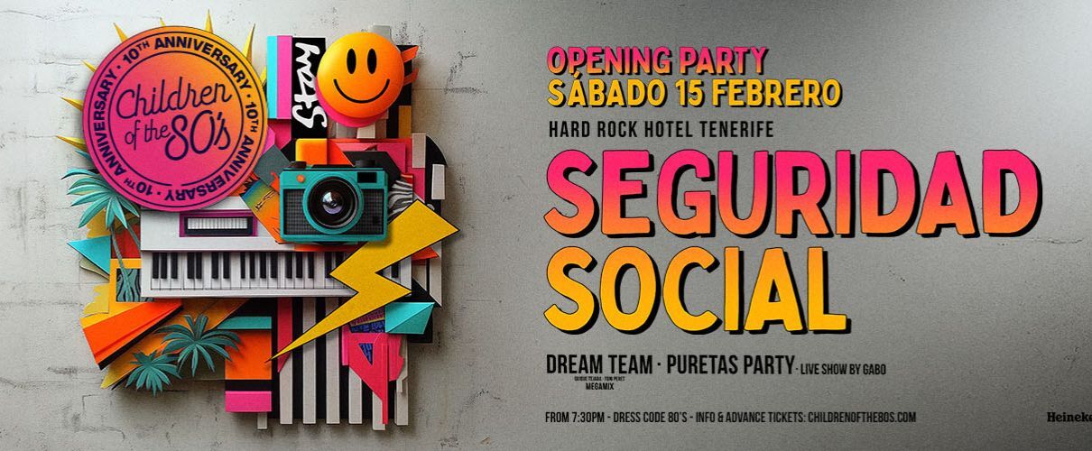 Disfruta de esta fiesta para adultos en el sur de Tenerife de la mano de Seguridad Social, Dream Team y Puretas Party. ¡No olvides tu look de los 80's!