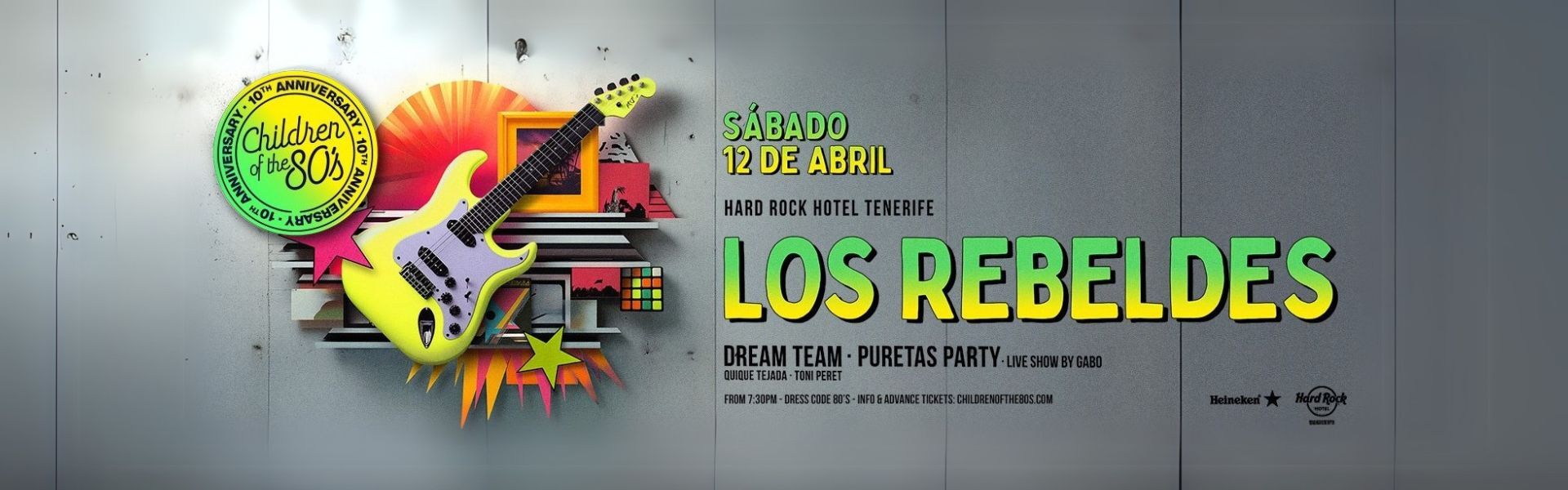 Llega una nueva edición de Children of the 80's al Hard Rock Hotel Tenerife en Adeje, el 12 de abril a las 19:55 h. La fiesta está garantizada, ven al sur de Tenerife y disfruta con Los Rebeldes, Dream Team y Puretas Party. ¡No te la puedes perder!