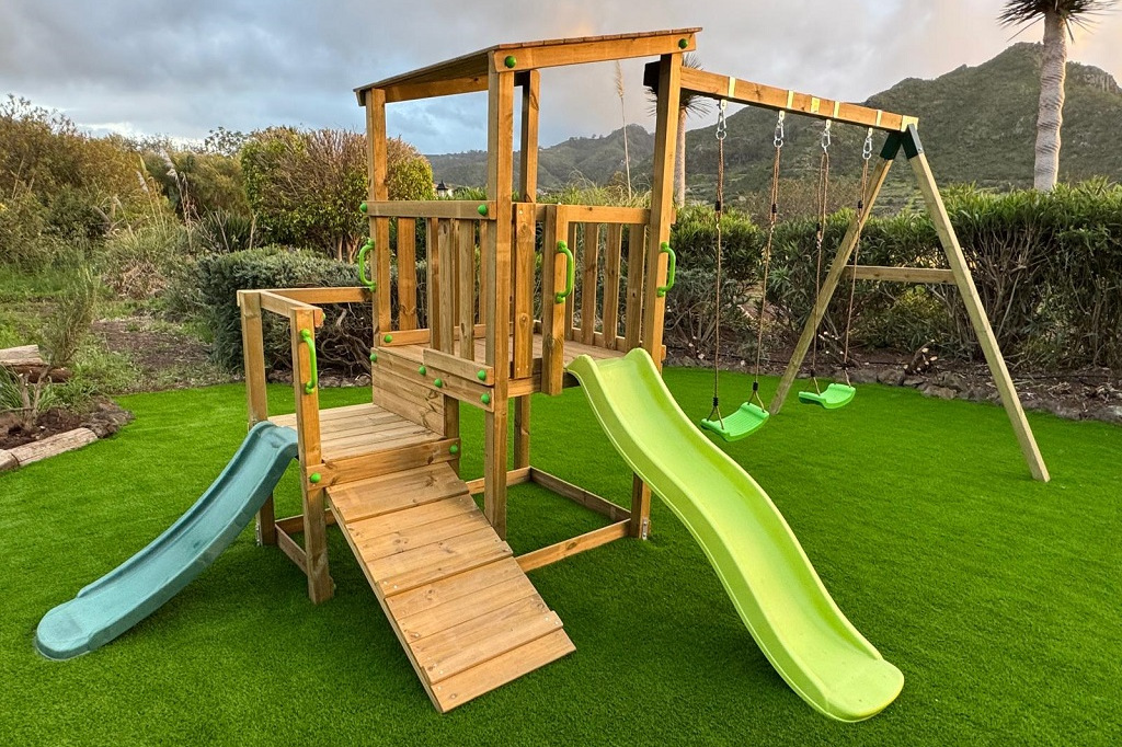 Cada alojamiento está equipado con TV-satélite, hilo musical, lavandería, piscina (con hidromasaje, natación contracorriente y cubierta telescópica para climatización), amplio solarium y jardines, parque infantil con casita de juegos, cenador y barbacoa exterior, salón social con ping-pong y juegos de mesa.