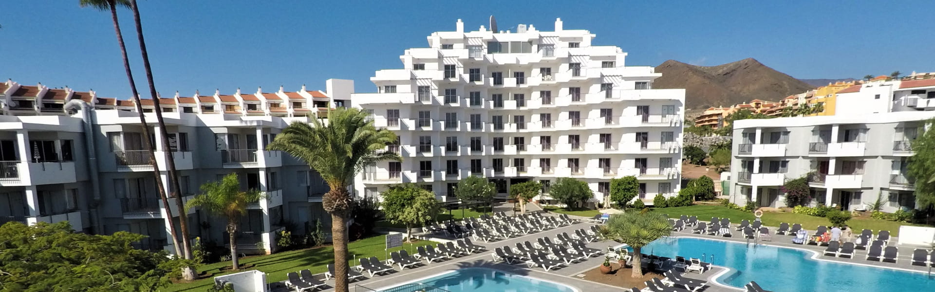 HG Tenerife Sur está situado en el pueblo marinero de Los Cristianos, a tan solo 500 m de la playa, a 15km del Aeropuerto Reina Sofía y al lado de la estación de autobuses, punto de partida ideal para descubrir la isla.