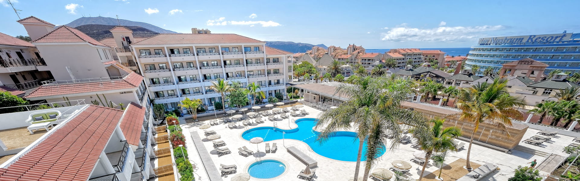 Hotel de 4 estrellas situado en el centro de Playa de las Américas, muy cerca de la playa, y donde disfrutar de las vacaciones y despreocuparse de todo.