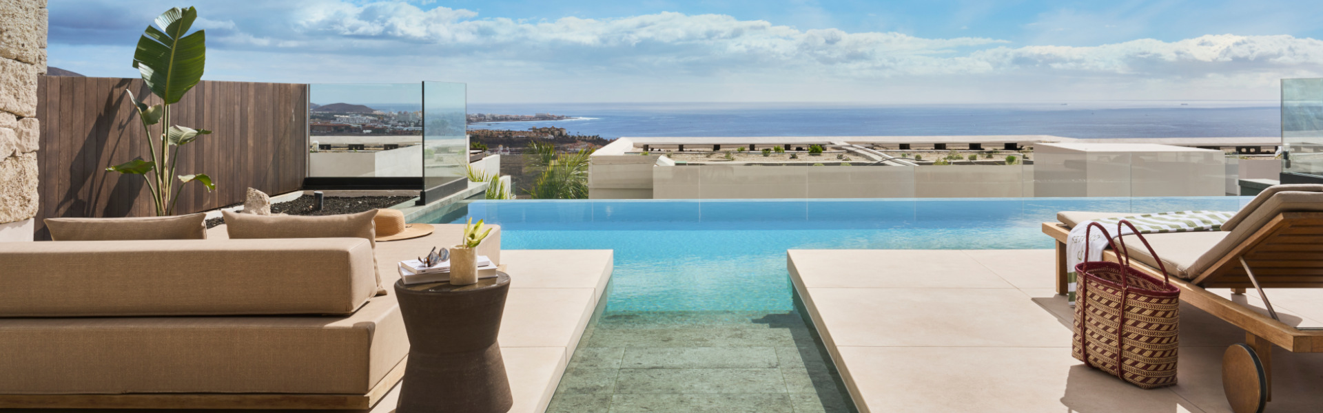 Este lujoso establecimiento, que combina un estilo minimalista y elegante con un firme compromiso de sostenibilidad, ofrece wellness de alto nivel (incluye tratamientos con Augustinus Bader), propuestas gastronómicas locales de autor (como Cráter Identidad Canaria) y ambientes de tranquilidad y exclusividad, propios del actual lujo silencioso.