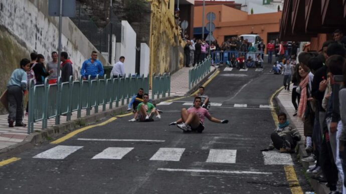- Las Tablas (Icod de los Vinos): Jóvenes y adultos se deslizan en tablas de madera por la empinada calle del Plano.