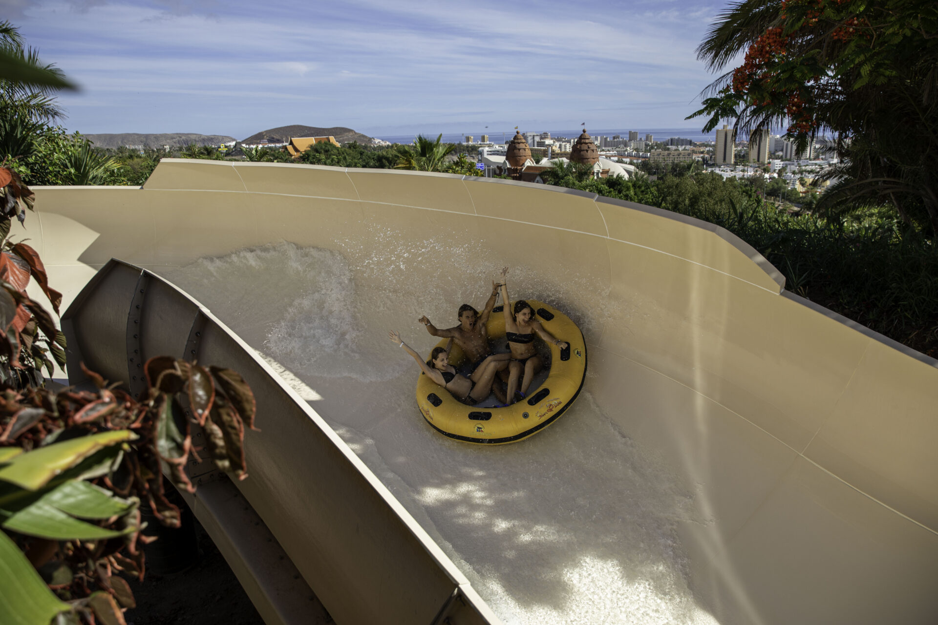 - Siam Park: famoso por sus récords mundiales en altura de toboganes y su río lento. Cuenta con la zona The Lost City, repleta de torres, puentes y cascadas para los más pequeños.