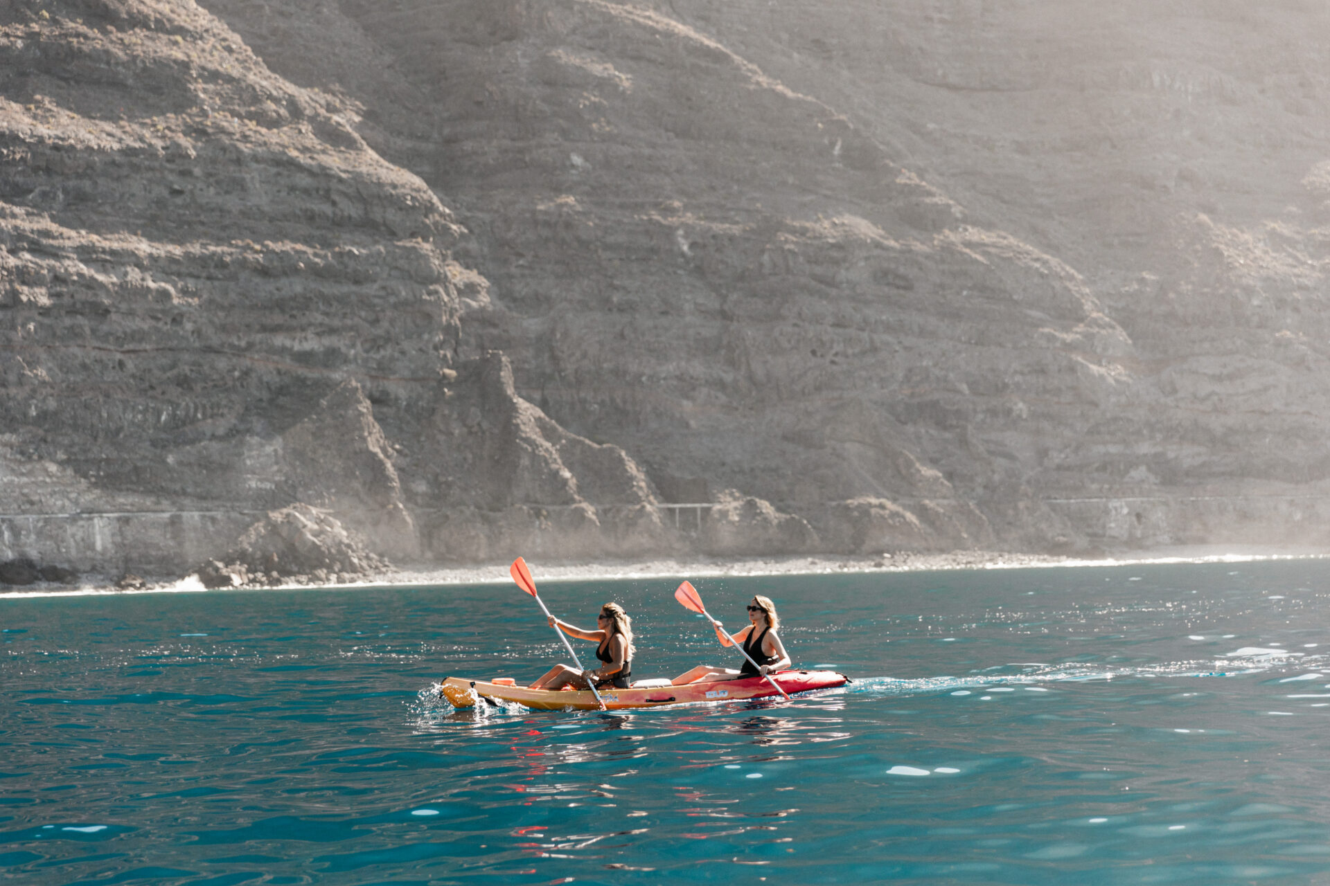 • Kayak: remar por la costa te permite acceder a lugares inalcanzables por tierra. Podrás adentrarte en cuevas volcánicas, navegar en aguas cristalinas y, con un poco de suerte, cruzarte con delfines en su hábitat natural.