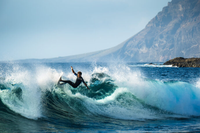 Tenerife ofrece fondos de arena, piedra o arrecife volcánico. Si una ola no encaja contigo, solo tienes que moverte unos minutos por la costa para probar la siguiente. El clima permite surfear en cualquier época del año.