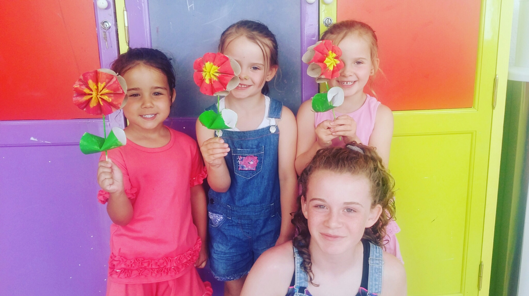 Con los niños se realizó una actividad de reciclaje. Crearon unas flores hechas con rollos de cartón.