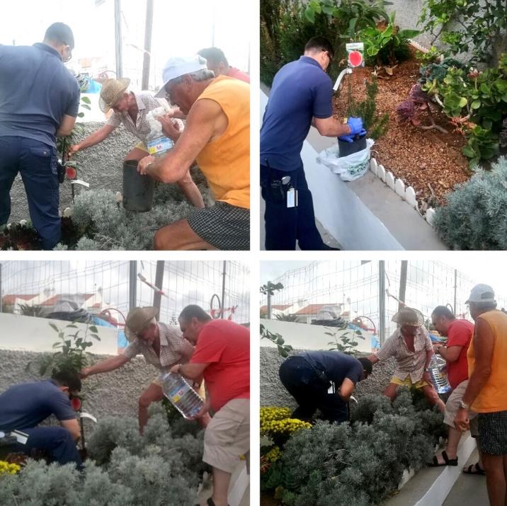 Actividades en el complejo y plantación de clientes y miembros de equipo de un árbol.