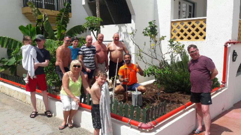 Actividades en el complejo en relación a la Triple R, tradicional plantado de un árbol entre clientes y miembros de equipo de un árbol